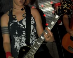 When the five piece, do take to the stage, we get the opportunity to see how well the current line up gel. Isis Queen, looking and sounding amazing on vocals is joined by Pyn Doll on lead guitar, former bassist Remmington Pearce on rhythm guitar with Iriel Blaque coming in on bass. Krash Doll, gotta love these names, hammers the cans behind everyone as if their life depended on it and from the off, it’s clear that they have something, still, to prove.