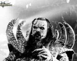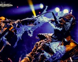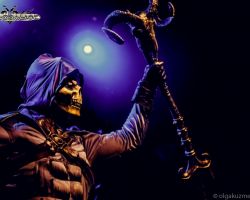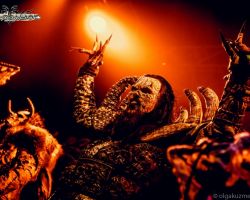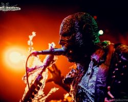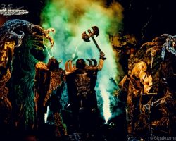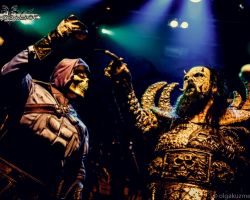 As the time draws near for Lordi to entertain us, much effort goes into setting up the customary stage props and decorations, and the changeover seems to take an age. When they finally take to the stage they are greeted with cheers from the fans as they reveal their newest schizophrenic outfits, designed and created by Mr. Lordi himself, reflecting the split theme of their brand new release Monstereophonic (Theaterror vs. Demonarchy). Mr. Lordi towers above the others in his stilted boots and it has to be said that all of the costumes are truly impressive and effective. The band gets things started with ‘Let’s Go Slaughter He-Man (I Wanna Be the Beast-Man in the Masters of the Universe)’, a mouthful from the new album, and are accompanied onstage by He-Man’s nemesis Skeletor. There’s no break and it’s straight into a typically chauvinistic ‘Babez for breakfast’ (not forgetting bitches for brunch and more sluts for lunch).