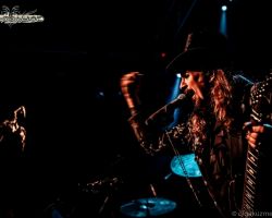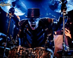 The night starts out with Swiss four-piece Silver Dust who put on an ostentatious performance of theatrical rock, appropriately dressed like circus ringmasters in tall hats and tuxedos. Sadly, their music is somewhat uninspiring and not improved by the weak vocals of Lord Campbell. Drummer Mr. Killjoy tries his hardest to entertain by twirling and tossing his sticks at every available opportunity, but it does little to motivate the majority of the crowd. Having said that, almost the entire audience willingly obeyed when they did the old “everyone crouch down on the floor and jump up when I say so” routine towards the end of their set, so maybe people were warming to their antics. The percussion is indeed the saving grace of the show, and a finale featuring all four members in synchronized tribal drumming is pretty catchy. An appropriate choice of support act given the night that’s in it, but not one I would personally rush out to see as a headliner.