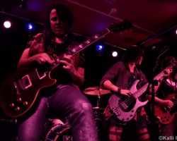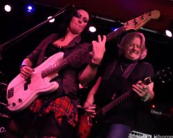 JoanOvArc appear on stage to give us what we came for, their new album release show. Opening with a bang, Live Rock and Roll gets everybody in the room moving. The ladies are clearly up for this evening, bringing energy that must only come from copious amounts of energy drink. Lead singer Sam Walker s vocals were on top form, as was her bass playing, although a quick change of bass was required before the ladies could fully get into the swing of the set. Album opening and title track Ride of your Life was next up, and new bass in hand Sam was able to show off her vocal range. lead guitarist Shelley Walker took every opportunity she could throughout the set to take to the front of the stage on the riser to show off her shredding skills. The next few songs flashed by in a blink of an eye, each one performed as well as the previous, and before long the ladies were welcoming on stage the first of their three special guests. Actor John Altman (better known as Nick Cotton in EastEnders) took to the stage to guest vocal for JoanOvArc’s cover of Iggy Pop’s Wild One. although an enjoyable cover which everybody in the room seemed to enjoy and appreciated it was a welcome return to Sams vocals for the break up song 5 years. More songs from the album followed, including Sisters, a tribute to each other and a departed friend. Our second guest vocalist Adam Barron was soon on stage. Aptly Adam was helping the girls with the vocals for The Beatles classic Help from my Friends, and you can hear why, what a voice, good job Adam and Sam are not in a vocal battle, Adam would win. Next up is Bad Company’s Dave Bucket Cowell to play guitar on Led Zeppelin’s Rock N Roll, before JoanOvArc’s rhythm guitarist Laura Ozholl takes lead vocal duty for possibly one of the best covers of Lynyrd Skynyrd’s Free Bird I have ever heard. This was no radio edit of the song, this was the full works, extended guitar solos, microphone accidents and general great showmanship.