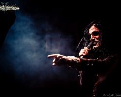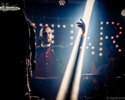 The house lights dim and an array of old-fashioned carnival light bulbs arranged to spell the band’s distinctive logo glow brightly as four of the five emerge from the stage trapdoor and immediately begin jamming an instrumental intro to ‘For the Swarm’ from their 2016 album Feathers & Flesh. A few moments later, ostentatious frontman Johannes Eckerström joins his fellow performers and starts his exuberant stage show. There is no doubting that this man loves the spotlight, and his unhinged ego rouses the crowd with pompous showmanship and narcissism. Red and yellow colors echo the circus theme around the stage (and even at the merch stand), and the band members themselves are dressed in circus attire, led by Eckerström as their insane ringmaster, who spends most of the night showboating on his circular podium. Of course, this is exactly what we expected and the crowd is absolutely loving it.