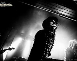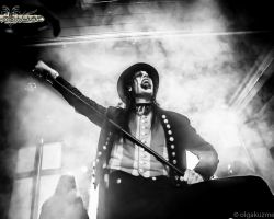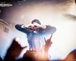 Unsurprisingly, the setlist draws heavily from Feathers & Flesh but also features several fan favorites from earlier popular albums Hail the Apocalypse and Black Waltz. Occasionally sipping an unknown beverage from his petrol canister, Eckerström addresses the audience regularly, never breaking character. His joker-like ear-to-ear grin, extended tongue, and manic eyes make it hard to refuse his requests… no… demands for everyone to put their devil horns in the air. After all, this is a room filled with beautifully deranged metalheads, he reminds us. There are certainly similarities with early Marilyn Manson and the likes of Murderdolls, but with enough originality to make it feel fresh. Stomping renditions of ‘Hail the Apocalypse’ and ‘Vultures Fly’ combined with singalong tracks like ‘Bloody Angel’ prove that the crowd is familiar with their earlier works as well as brand new tracks like ‘New Land’ and ‘House of Eternal Hunt’. We are even treated to the exclusive international live debut of ‘When the Snow Lies Red’. And with the show in its climatic final quarter, there’s still time to reach back to Black Waltz, their 2012 album which introduced Eckerström’s clown-like persona, for popular tracks ‘Let it Burn’ and the appropriately titled ‘Smells Like a Freakshow’.
