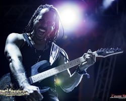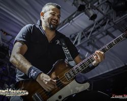 The ultimate rush kicked in, and it was time for me to run back to the Alhambra Theater to catch the Swedish symphonic metal act Therion. Before 70,000 tons of Metal, Christofer Johnsson revealed 70,000 tons of Metal could have been his final performance due to having two spinal disc herniations. While we don’t have any updates, I was there assuming it was his last two performances. Let’s face it, Therion is Christofer Johnsson; he is the mastermind behind it. The set was made simple for him, but no one even noticed. They opened with “The Rise of Sodom and Gomorrah,” and continued with songs such as “Son of the Sun,” “Abraxas,” and “Ginnungagap.” I stayed there for a decent amount, however, looking at the schedule it was time for me to run to see Brazillian power metallers Angra on the Pool Deck. Unfortunately, the Pool Deck was running behind which did change my schedule for that day. However, I will never forget to ask security to see if Angra was running on time. They looked at the clock and said to me “6 PM.” The pool deck was at this point, freezing due to the windy night and all I wanted to do was to stop in my room to grab a hoodie, but at the same time, I wasn’t going to miss Angra. Aside from a few sprinkled show dates in America, they barely come out nor book a full North American tour. Unfortunately, I believed security and decided to stand outside on the cold, windy night, exhausted, back hurting and all just to see Angra. Roughly one hour later, after tying down the 70k banners, which I would recommend for next year that this is pre-planned/set up because having fans wait an hour for a show and delaying the schedule (as tight as it is), should be avoided. Finally, it was time for Angra, and I stayed for their entire set. They did all of the hits and concluded with my favorite Angra tune “Carry On.”