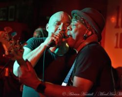 It’s worth noting the use of the word JAM. This felt less like a clinically rehearsed gig and more like a group comprising friends and family gathering to see what would happen. There were references to the album launch show where Melvin’s bass amp caused some excitement before shutting down at one point. Similar noise and feedback during the set resulted in all fingers being pointed to poor old Melvin who, rightly so, denied any responsibility before the problem was identified somewhere near Rob Daiker’s kit. Smiles all round and the band played on as they continued to do so when Dan forgot the words on one song, Dan Pred messed up the drum intro on another and Brion James started some impromptu playing of a Steely Dan number during which Dan Reed offered to ‘eat my shirt’ if Brion nailed it. He did and the resulting shirt-feast was clearly tough on the palette for Dan!