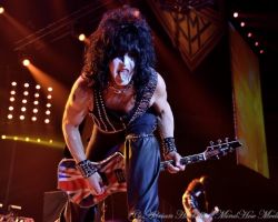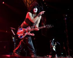 Stanley and Simmons remain the stars of the show with both having unique set pieces that allow them their moments in the spotlight. Simmons has unsurprisingly a bass solo that leads into God of Thunder that sees him drinking and spitting blood before flying up into the rafters to perform his signature piece.