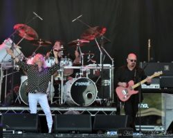 As I approached the Prog stage, Focus were in full swing with “Sylvia”, always a sound favourite of mine from re-runs of ‘The Old Grey Whistle Test’ it was a nostalgic pleasure to hear in real life and as if things couldn’t get any better they tripped their way straight into “Hocus Pocus”. Being one of my all time favourite songs, this stirred a great deal of excitement and the 11 minute plus version, which featured a breathtaking drum solo was the highlight of my day and possibly my entire weekend. The skill and precision of drummer Pierre van der Linden was completely overwhelming and the solo in question would easily rank among the best I have ever heard. As much as I was in awe of this outstanding performance, I couldn’t help but notice – with some degree of amusement, how many of the assembled crowd stared on bewildered and I formed the opinion that you either get it or you don’t…