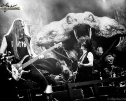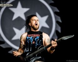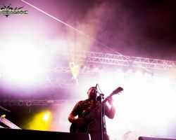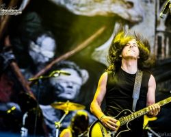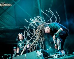 After a brief and unexpected rain shower, we return to the main stage to catch the Polish technical death metallers Decapitated. Another band making their second appearance at Bloodstock, they have a considerable following in the audience, judging by the size of the crowd gathered and their familiarity with the music. Having just released their seventh studio album Anticult, they open with two brand new tracks ‘Deathvaluation’ and ‘Kill the Cult’, before playing some older, more familiar numbers. Frontman “Rasta” Piotrowski whips his ass-length dreads around as his band mates deliver a punishing performance that sets the bar high for the remainder of the festival. In all, half of their set is taken from their one-month-old release, which is a testament to their confidence in the new material, and a decision well-received by the fans.