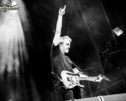 Usurping Blind Guardian from their one-time headline rank on the main stage (back in 2002 when Bloodstock was an indoor event), Amon Amarth triumphantly return for their fourth appearance, but their first time topping the bill. As anticipated, their stage show is peppered with pyro and props, with the drum kit mounted on a giant Viking helmet. The crowd gets many-a-chance to raise their Viking drinking horns to make a toast to Odin or Thor, as frontman Johan Hegg leads, and demands them to “skull”. Hegg also attempts to break the record for the most people engaged in epic Viking rowing (think of the classic wedding party piece “rock-the-boat”, but with bearded, sweaty metallers, pretending to propel a longboat). While hundreds, if not thousands, did indeed get on the ground, sadly, the record attempt falls short of what could truly have been an epic event with a bit more encouragement and direction from Hegg. There’s plenty of burning props and exploding hammers to accompany their triumphant tracks making their performance a satisfying choice of Friday headliner.