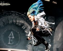 The penultimate band on the main stage are melodic death metal supergroup Arch Enemy, making their third such headline-supporting appearance at Bloodstock festival. A massive crowd has gathered for this final one-two of bands, and the performance doesn’t disappoint. They open with a brand new track ‘The World is Yours’ from their forthcoming album Will to Power, as relative newcomer Alissa White-Gluz jumps energetically around the stage while still managing to sound powerful and precise. The rest of the band too put on a stellar performance throughout. Considering that tonight is the final show of their 300+ date tour on the back of their hugely successful 2014 War Eternal album, it’s not surprising that they have it down to a fine art. Classic Arch Enemy tracks like ‘My Apocalypse’ and set closer ‘Nemesis’ are the ones that really get the crowd over-excited, and we wonder how much energy could possibly be left over for the Bay Area headliners.