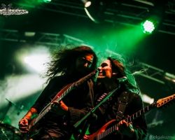 It’s another sunny day, but stirring up a storm on the main stage is the controversial Mexican extreme death grind group Brujeria. Wearing bandanas as masks covering their mouths during their high energy performance, their anti-establishment and anti-American stance is abundantly clear, despite communicating with the crowd almost exclusively through Spanish. On one rare occasion, frontman Juan Brujo explains “In the United States we have a new president. We don’t know how the fuck it happened. Since he took office the world’s going to shit”. He then encourages the audience to chant “Fuck Donald Trump”, which surprisingly doesn’t catch on as much as one might have anticipated. Certainly nowhere near as much as the sing-a-long of their closing song ‘Marijuana’ (sung to the tune of the Macarena). It’s a real eye-opener to see the number of Bloodstockers who know, and are willing to do, the Macarena dance!