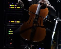 On cello and perched in front of a bank of monitors was (I believe) Jonathan Kampfe who, without spacesuit (cello and bulky suits tend not to mix well) played to add the cinematic qualities to the songs that many fans in The Forum know so well.