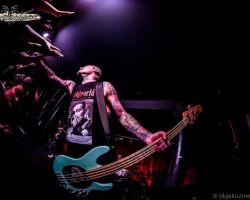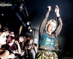 We arrive too late to catch the opening act, (Welsh alternative quintet Casey), but just in time to check out Scottish quartet Vukovi. The noisy pop rockers formed in 2010 and are fronted by vibrant vocalist Janine Shilstone, who, dressed in baggy oversized combat trousers and a glittery top matching her eye make-up, dominates the stage during their high energy performance. With Vukovi’s eponymous debut album less than a year old, the audience would be forgiven for a certain level of unfamiliarity or indifference, but the youthful attendees quickly succumb to the encouragement of the foul-mouthed front-woman, whose writhing and ass-shaking are not something often seen onstage at a “metal” show. It’s an interesting performance that can’t really be faulted, and is well suited to the attendance, but not a band that I would personally go out of my way to see again. During the last track, titled ‘Boy George’, Shilstone climbs over the rail and into the middle of the crowd with a microphone in hand, no doubt making a memorable impression on potential new fans.