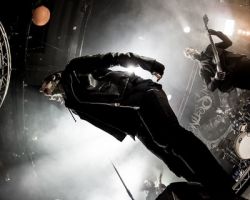 Motionless In White kick off proceedings with ‘Rats’, the opening track from Graveyard Shift, to a chorus of screams and hollers from the front rows. The Pennsylvanian five-piece is accompanied onstage by two PVC-clad dancing girls, once again reminding me of Manson’s Golden Age of Grotesque era during which he would bring dancing burlesque girls onstage during his shows. Indeed, for those who missed out on the live heyday of the God of Fuck, tonight’s show promises to be a worthy consolation with its own merit and individuality. I realize I’ve labored the unavoidable comparison, but MIW is certainly not ripping anyone off.