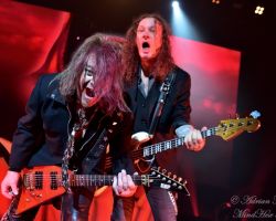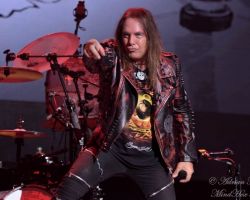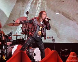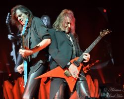 Dr Stein and some amusing visuals to accompany it followed, the crowd singing along like their lives depended on it. From that point on, Kiske took the lead on some songs, Deris on others, depending on the point in the career that the band wished to focus. The old school fans almost wet themselves with excitement when Kai Hansen took to the microphone to provide the vocals for the pre-Kiske era with ‘Starlight’, ‘Ride the Sky’, ‘Judas’ and ‘Heavy Metal (Is the Law’).