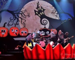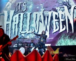 A stunning backdrop and huge video screen showcasing some of the ‘crazy’ German humour and pumpkin cartoons, a giant inflatable pumpkin base around the drum riser, three vocalists (yes three..) paved the way for a 24 song set list covering every era of the band.