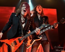 With a tongue in cheek intro tape playing Robbie Williams’ ‘Let Me Entertain You’, which got everyone singing along like a rowdy crowd at Oktoberfest, the band kicked off with ‘Halloween’. A bold move when your opening song is a thirteen minute epic. With Deris and Kiske sharing vocals, complimenting each other perfectly, the triple guitar approach of Hansen, Weikath and Sascha Gerstner allowed each one solos spots and a sound that rattled the rafters of the capacity filled Academy.