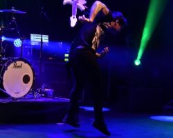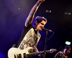 With Ortiz pounding a double bass drum kit at the back of the stage, it’s left to dynamic guitarist Kevin “Thrasher” Gruft and animated front man Craig Mabbitt to really bring the show home to the crowd. Pairing off like the best and classic front man \ lead guitar partnerships out there, their unique style brings a huge amount of energy to the performance. Aided stage left by TJ Bell who swings his guitar around his body with a fire that makes you wonder if he’s ever lost it and the instrument has flown out into the crowd [one for a YouTube search maybe?]