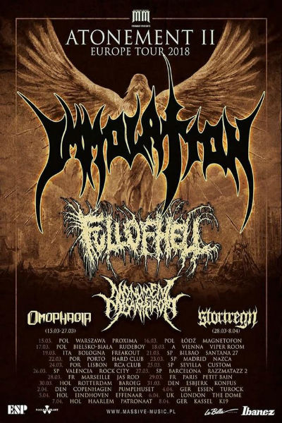 We’re only one month away from IMMOLATION‘s European live return with their ‘Atonement II – Europe Tour 2018’ – and supporting them on the road will be FULL OF HELL plus MONUMENT OF MISANTHROPY. The opening acts for this upcoming European run have now been unveiled; STORTREGN will be joining them on the second leg of their tour from March 28 until April 8, which includes their London show at The Dome. OMOPHAGIA will be accompanying them on preliminary, EU leg from March 15 until March 27. Following this run, the NYC death squad will be hitting South America at the end of April. All details below.