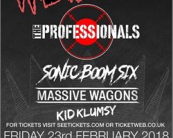 And work they did and then some. By the time they’d come off stage the band were pouring with sweat and a defiant look of ‘take that Wakefield’. The winning formula, aside from grit and determination, was a stunning cover of ‘I Fought the Law’. Now I’d always taken this as a song written by The Clash but it turns out that the song was written by Sonny Curtis of the Crickets and popularized by a cover by the Bobby Fuller Four, which went on to become a top-ten hit for the band in 1966. The song was of course also recorded by the Clash in 1979. Either way, it worked and with a final snarling rendition of ‘For The Kids of The Multiculture’, the band were done and we refilled glasses and waited for The Professionals
