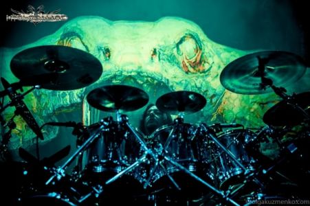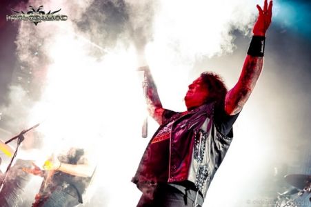 The first band of the night is Polish death metallers Vader, who are regular visitors to Ireland, having played here almost annually for the past decade. At precisely 7 pm, a drawn-out intro gives way to opening tracks ‘Chaos’ and ‘Vicious Circle’ from their quarter-century old debut album The Ultimate Incantation. Immediately, the dirty riffs and blistering solos get the chocolate-gorged audience energized and moving. Next up is ‘Triumph of Death’; “a good song for today”, preaches frontman Piotr Wiwczarek. Admitting that they would love to perform it in its entirety, they continue to honor their first album by performing a total of four of its numbers in their nine-song setlist, and surprisingly only delivering one track ‘Send Me Back to Hell’ from their most recent release The Empire. Their stage time passes quickly but seems to appease the bumper crowd, and they leave the stage to a recording of ‘The Imperial March’, an unapologetic nod to the inspiration for their band name.