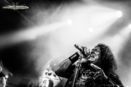 Formed in the San Francisco Bay area in the early eighties alongside bands like Metallica and Exodus, Testament has stayed faithful to their roots and continued to record and tour throughout their 35-year career. Sadly, in that time, they have visited Ireland on just three previous occasions, which undoubtedly helped to sell out the sizeable Vicar Street venue tonight. Right on schedule, the five-piece fronted by the ever-jovial frontman Chuck Billy take to the stage and open with the title track from their most recent album Brotherhood of the Snake. The three-headed snake from the cover artwork adorns the backdrop and pentagram framed skulls with glowing red eyes oversee the performance. The second track is ‘Rise Up’ from another recent album Dark Roots of Earth, and CO2 canons seem to trigger the flow of crowd surfers, who are pushed back into the crowd by the trend-bucking Vicar Street security staff. The production of the show leaves nothing to be desired, with impressive lighting and perfect sound quality throughout. Having a smaller discography than Annihilator, Testament manage to squeeze songs from almost all of their albums in their lengthy 1 hour 45-minute set. And with such a long set, solos are an unsurprising way to give aging rockers a chance to catch their breath, but the four instrumental indulgences prove a bit tiresome for many of tonight’s attendees and are probably the only complaint from an otherwise overwhelmingly satisfied audience.