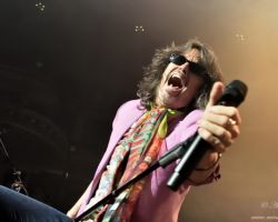 With the Bad Company’s Silver, Blue And Gold playing on the P.A., singer Kelly Hansen dashed onto the stage decked in sunglasses, skinny jeans, a pink jacket and scarf, clearly following fashion advice from both Mick Jagger and Steven Tyler. To be fair to Hansen though, he owns the stage as much as either of the two people mentioned and can and did hold the audience in thrall as the band performed 15 of their hot blooded tracks over the next 90 minutes. He even jumped down off the stage at one point and charged into the middle of the audience on the floor making the event feel even more up close and personal for the people he stopped by.