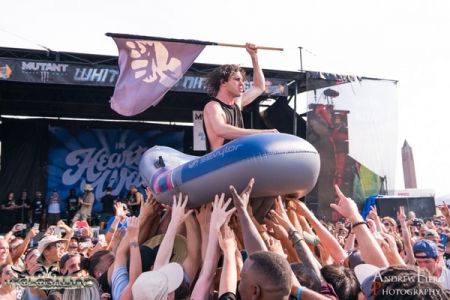 The Australian take-over continued as In Hearts Wake came to the White Lightning stage ready to show the American crowd how Aussies like to party. The highlight of their set saw lead singer Jake Taylor take to the crowd in an inflatable boat to the sounds of Lonely Island’s “I’m On A Boat”. As he rode the sea of Long Island fans, he was led to a flag which he waved proudly while making his way back to the stage.