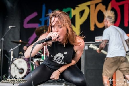 Headlining the Mutant stages for this night would be Baltimore Maryland’s Sharptooth. Led by the powerful vocals of Lauren Kashan, the group’s aggressive tracks struck a chord with those who stayed around all day to catch their performance. Incredibly grateful for the opportunity to close out the stage, Sharptooth gave fans hope as Kashan’s message became clear to not let yourself become a victim and to speak out. As the sun went down on the hot summer day, the band closed up their set with “Clever Girl”.