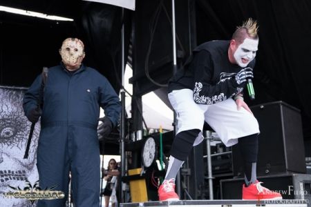 The Red Dawn stage was next to attract fans as Detroit, Michigan’s Twiztid hit the stage. Providing something different for the day, the Hip Hop team were joined on stage by Jason and Michael of Friday the 13th and Halloween franchise fame respectively. While the face-painted duo pumped up the crowd with cuts including “Kill Somebody” and “We Don’t Die”, the horror icons would occasionally cross paths teasing a showdown of epic proportions.
