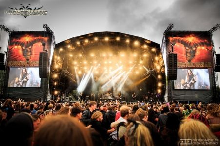 Nightwish has headlined Bloodstock main stages twice previously, in 2008 and way back in 2003. This year they bring with them possibly the biggest and highest definition backing screen I have ever seen at a concert, and high-resolution video and graphics accompany their performance from the start. After a sixty-second countdown timer on the afore-mentioned big screen, the Finnish symphonic metal sextet kicks off their spectacular show with ‘End of All Hope’ from their 2002 album Century Child. Their setlist is a crowd-pleasing spread of tracks from their entire back catalog, and the audience seems fully engaged with the elaborate experience. Watch out for more about tonight’s climatic mainstage finale from My Global Mind editor Adrian Hextall!
