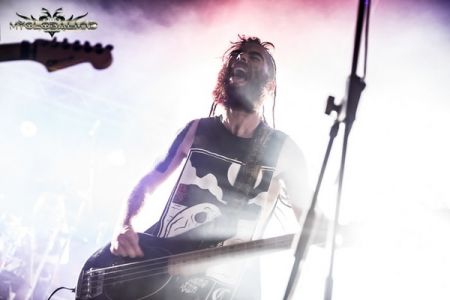 We grab some lunch and catch a few minutes of Californian mixed metal maniacs Sangre before we make our way across the arena to the Hobgoblin New Blood Stage. There, the Irish winners of the Metal 2 the Masses competition This Place Hell are preparing to unleash hell upon the enthusiastic but modest crowd that has gathered. The five-piece aggressive metallers have been seen all weekend advertising their Sunday slot with promotional Lollipops (A reference to the imminent visit of Pope Francis to Dublin) and branded condoms. Unfortunately, their stage time clashes with Hatebreed’s Jamey Jasta and his star-studded variety act on the main stage, so there’s no denying they would have to put on a great show to reward those who turned up. Luckily for those loyal and fortunate attendees, the Dublin-based band succeed in tearing the tent a new airhole. If aggressive and heavy are what you like then This Place Hell is most definitely for you. Opening with ‘Survival of the Fittest’ immediately followed by ‘Filth’ for which a brand new video has just been released, frontman Stephen Cannon makes sure to bring the audience closer for some sweaty moshpit action. Already familiar names in the Irish metal scene, and with an upcoming support slot for Devildriver, this is one band that will surely be appearing in the UK and Europe in the coming months and years. Indeed an aural ass-kicking for the uninitiated.