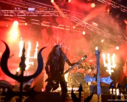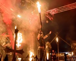 Watain then have the privilege of bringing the festival to close on the Sophie Lancaster Stage. To say it was unnerving would be an understatement. The smell of rotting pigs blood makes the tent feel like a portaloo that’s just been emptied (you’re not quite sure where the smell is coming from but it hangs in the air). The stage is decked out with spikes, speaks and imagery that fits the band perfectly. Most of the stage is lit on fire and the local fire brigade are on hand (in large numbers) just in case the tent goes WOOF!