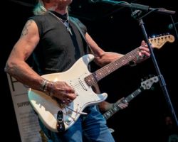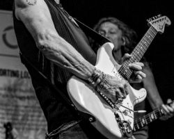 The DGs’ youthful looks were sharply contrasted with the next artist – the legend that is Del Bromham. Del, who was the founder and guitarist/songwriter with 70s rock band Stray, has been touring recently with his Blues Devils Band and took the middle-slot at the festival. It became immediately obvious that many of the audience knew Del and his former band well as he sauntered, nattily behatted, onto the stage to rousing cheers. With a knowing smile and the glance at the audience of a seasoned performer, Del struck up the first chords to Bobby Bland’s ‘This Time I’m Gone For Good’ and (somewhat appropriately given the venue) the lesson in old-school rock and blues began. Notes and tracks flowed effortlessly from Del’s Fender Strat and vintage Gibson guitars as you might expect from someone with 50+ years of experience (as he selflessly confessed to) on the frets. The driving riffs of ‘House of Love’ and more melodic ‘Slave’ from his solo album Devil’s Highway gave way to ‘You Don’t Know How I Feel’ and ‘The Ballad of JD’ (yes a song about that THAT whiskey man) from Nine Yards. Stray fans were rewarded with the classic ‘After The Storm’ and then a couple more solo songs before Del finished up with the old Traffic number ‘Dear Mr Fantasy’.