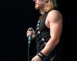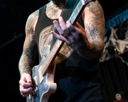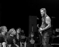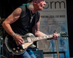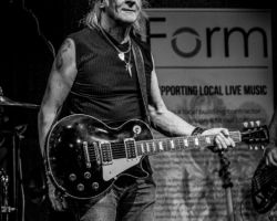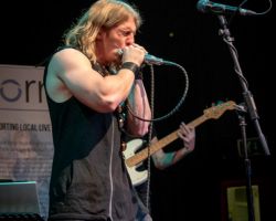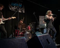 The kick of the bass drum and Kris’ foot stomping launched into the driving (and audience sing-a-long) ‘Lovers Or Losers’ which closed the set on a high, the packed auditorium applauding with aplomb. The three festival organisers Steve, Andy Davies and Mark Matthews took to the stage to thank the bands, audience and the crew and staff at the venue before inviting Kris and the band back on stage for a rousing encore of ‘Rock ‘N’ Roll Running Through My Veins’.