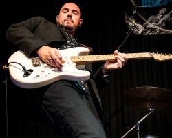 Kris Barras really needed little introduction by co-organiser Steve, as he is one of the hardest working British blues musicians around. Sandwiching this gig in-between his current Divine and Dirty album tour and being straight back out on the road supporting Joanne Shaw Taylor, Kris and the band took to the stage as if it was the first night. Starting with the up-tempo ‘Heart On Your Sleeve’ from his Lucky 13 album, Kris and the band (JJ Manning – keyboards, Elliott Blackler – bass and Will Beavis – drums) ploughed through the rocket-fuelled bluesy ‘Kick Me Down’, ‘Stitch Me Up’ and ‘Blood on Your Hands’, before taking a breath and delivering a new song ‘What A Way To Go’ and the classic Creedence Clearwater Revival cover ‘Fortunate Son’.