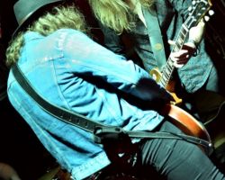 Here’s a fun fact for you. The band were joined on stage by harmonica player from Alabama 3, Nick Reynolds. Now Nick, as well as playing a mean harmonica in the band where he is known as Harpo Strangelove, is also well known for making death masks. People whose death mask he has created include Pat Castange, Lord Jago Elliot and George “Taters” Chatham, once the best-known thief in Britain. Having also been in the Royal Navy and served in the Falklands conflict, Nick is also the son of Bruce Reynolds, the mastermind behind the great train robbery. At the show, he simply needed to play some of the meanest harmonica going and that’s just what we got!