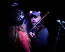The music itself was a privilege to behold, the drummer Alex Smith, pounding out his rhythms on the toms ably backed by John Alexander on bass. With Ryan Brooks and Ken Bonsall on guitars and Dan Booth on the violin, providing the meat and bones to the band. Multi-instrumentalist Sam Wood, changing instruments seamlessly from mandolin to banjo to guitar to accordion and back again between each song. Mr. Wood is one of those amazingly talented individuals that can infuriatingly play almost any instrument put before him. Mr. Booth, although suffering a technical hitch toward the end of the set, played some exquisite melodic riffs on his violin. They set the tone for many of the uplifting tracks, like opener ‘Haul Away Joe’, encouraging the crowd to get down and boogie.