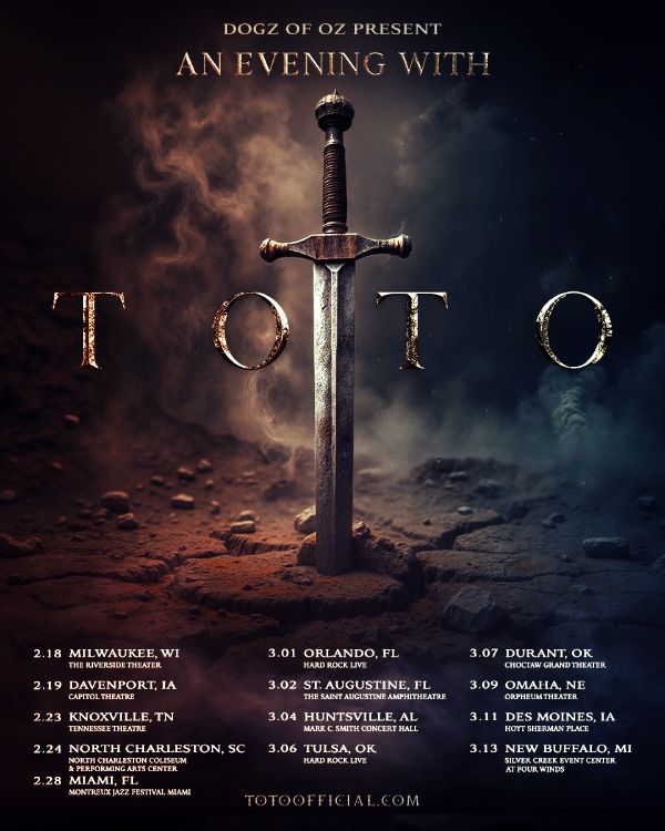 Grammy Award-winning rock legends TOTO have announced a special “An Evening With” U.S. tour, kicking off February 18, 2026 at Milwaukee’s The Riverside Theater and concluding March 13 at the Silver Creek Event Center at Four Winds in New Buffalo, Michigan.